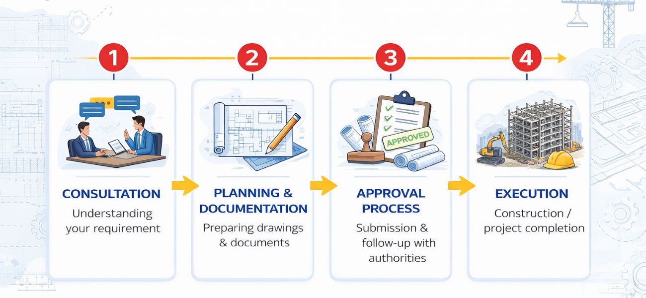 Partner with us for decades of hands-on experience, a strong history of delivering approved projects, expert understanding of regulatory processes, and complete project support from concept to completion, ensuring efficiency, accuracy, and dependable results every time.